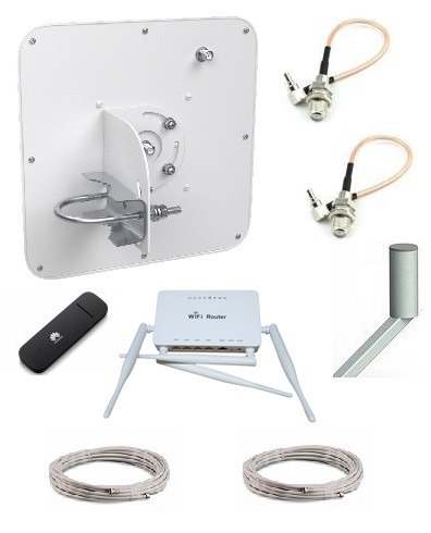 Комплект обеспечит интернетом дом 250 кв/м. Идеальный вариант для обучения и работы онлайн. Даст возможность одновременного просмотра трёх телевизоров смарт тв и бесперебойной работе в интернете. В данном комплекте есть возможность использовать дешевые тарифы операторов. Комплект: Уличная панельная MiMo антенна усилением 14/20 dbi, мощный и надежный роутер ZBT WE 1626(Zyxel Keenetic Omni2),модем Huawei E3372h-153, кронштейн, кабельная сборка. Раздача WI FI на площади до 250 кв./м. Работает до 8/20 км. от базовой станции.