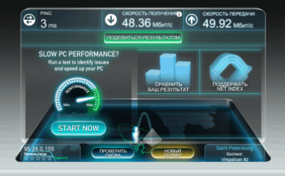 ➕ Высокая скорость (до 300 Мбит/с, в среднем около 40-60 Мбит/с)